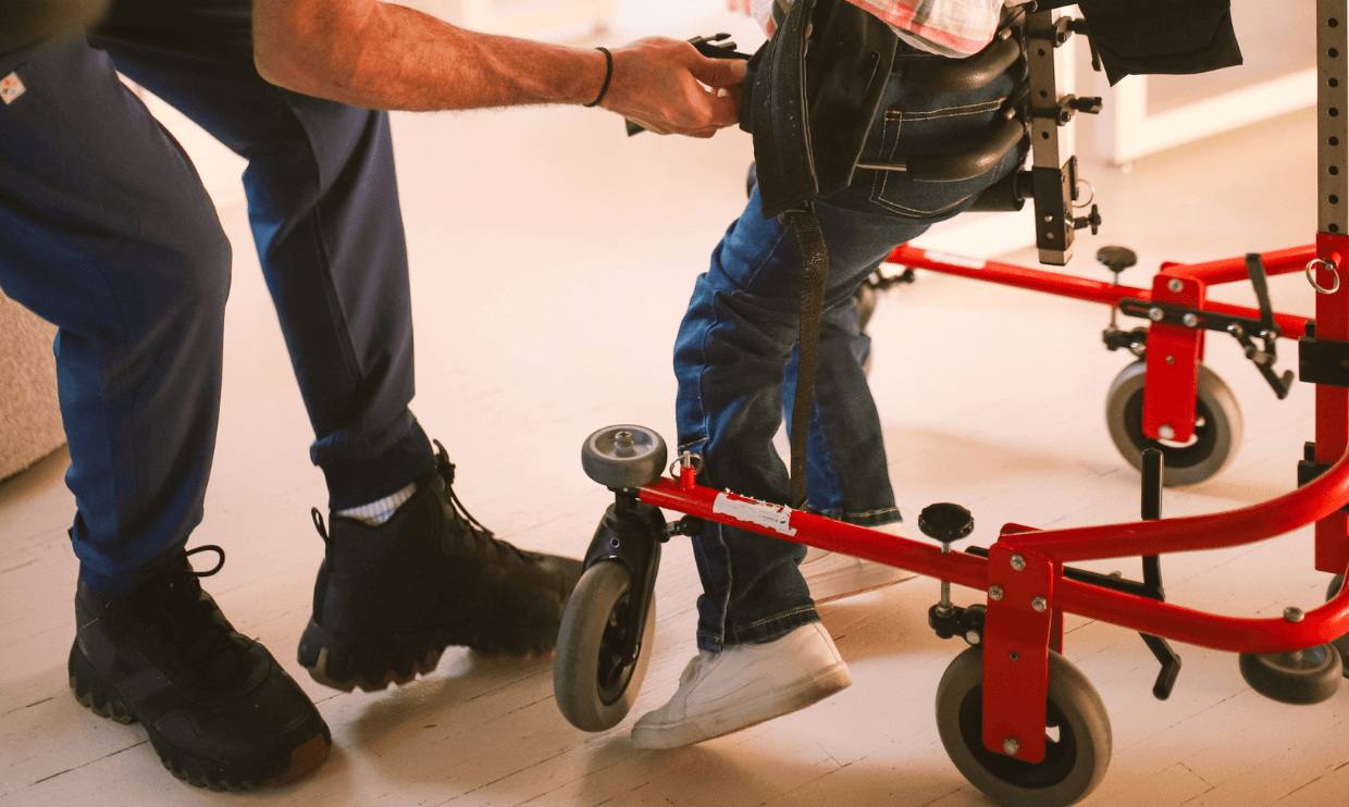 Some examples include power wheelchairs, standers, gait trainers, transport chairs, and even adapted bikes. Other tools like forearm crutches, ankle braces, and shoe orthotics can also make a big difference in how someone moves and feels throughout the day. These familiar items can be part of their therapy sessions to support mobility and build strength in a way that feels comfortable and routine.